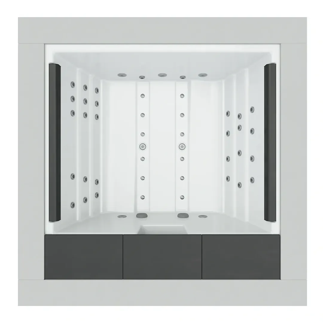 Με χωρητικότητα τεσσάρων ατόμων, το Spa Cube προσφέρει άνεση και ελευθερία κινήσεων στο εσωτερικό του. Τα 27 jets υδρομασάζ και οι 12 εισαγωγείς αέρα εξασφαλίζουν ασύγκριτη σωματική διέγερση και αναζωογόνηση.